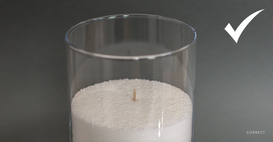Place the wick into the center, leaving about 1/4 inch (or a few centimeters) above the wax.
