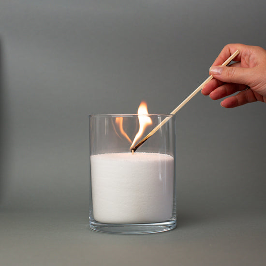 Flatten the surface of the wax, light the wick, and enjoy up to 15 hours of burn time with each wick.