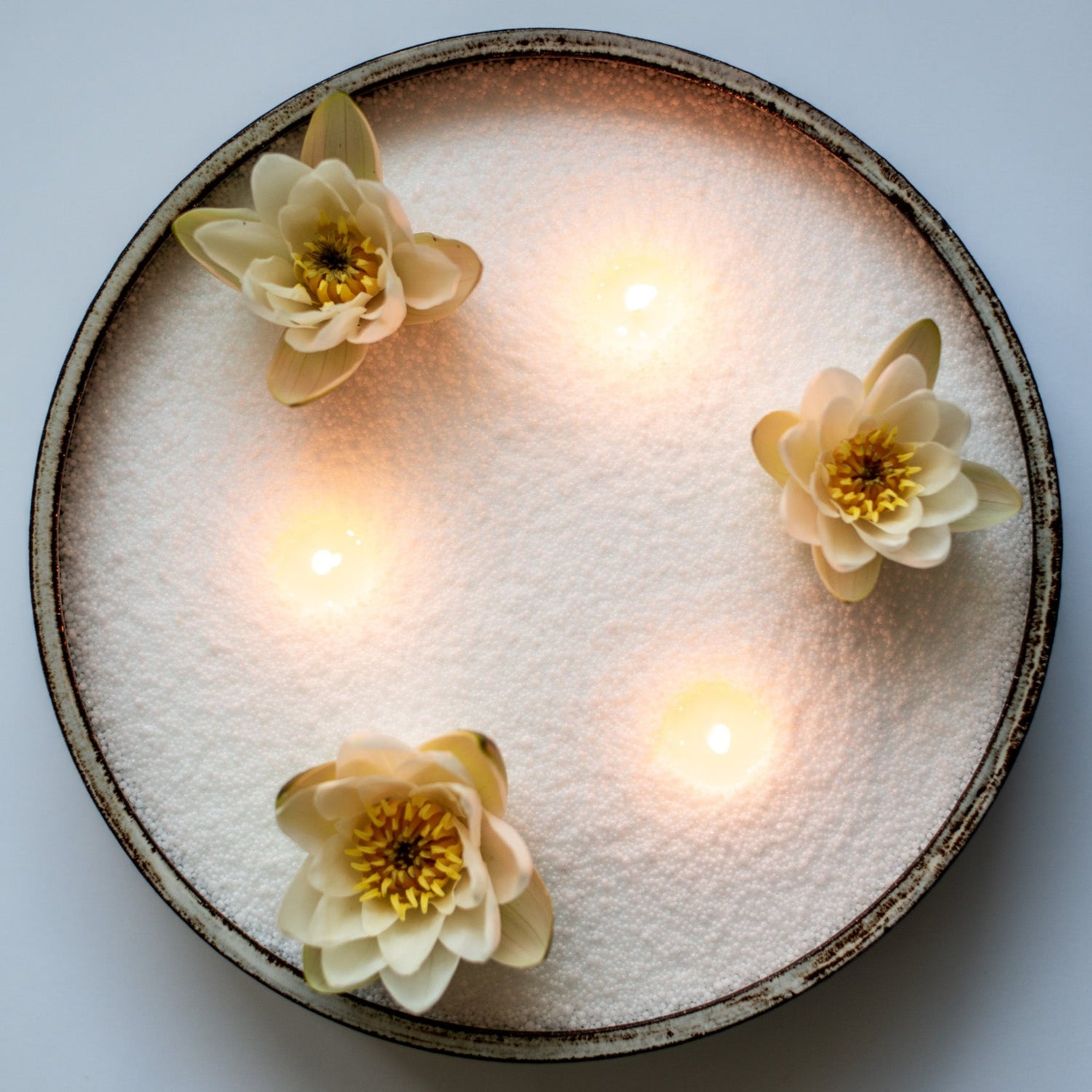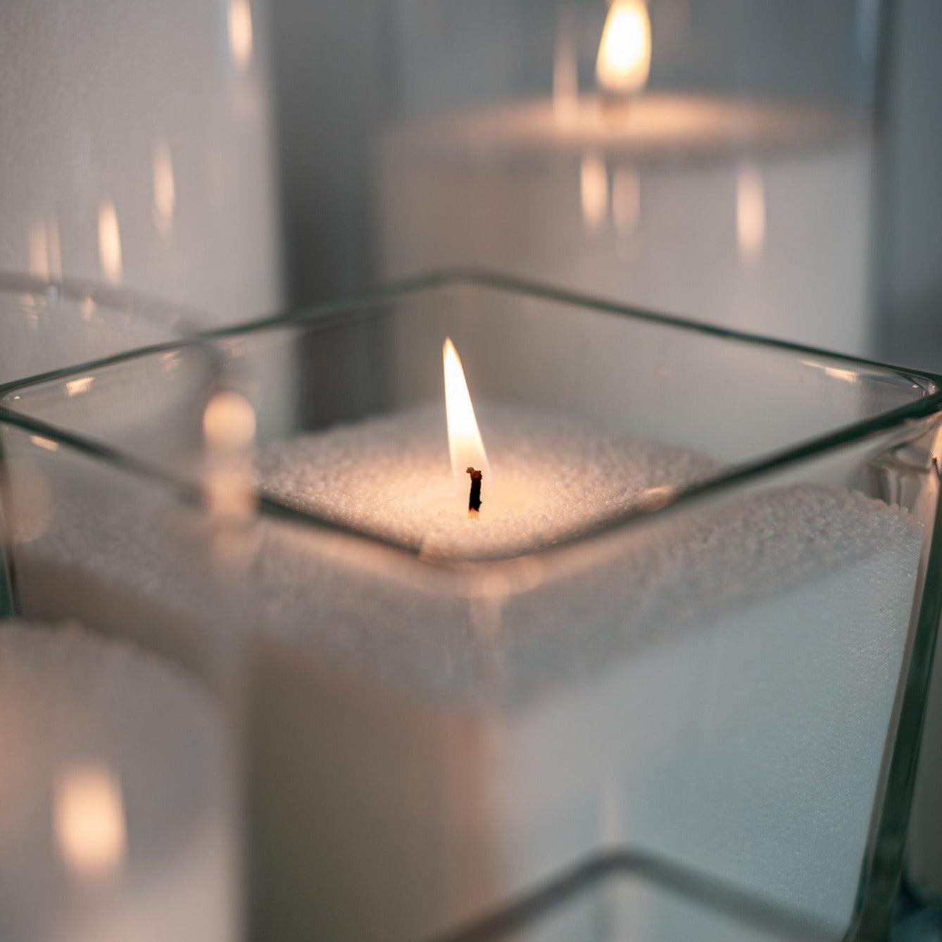 - Insert the wick, leaving max 1cm (1/4”) out of the wax and ignite.