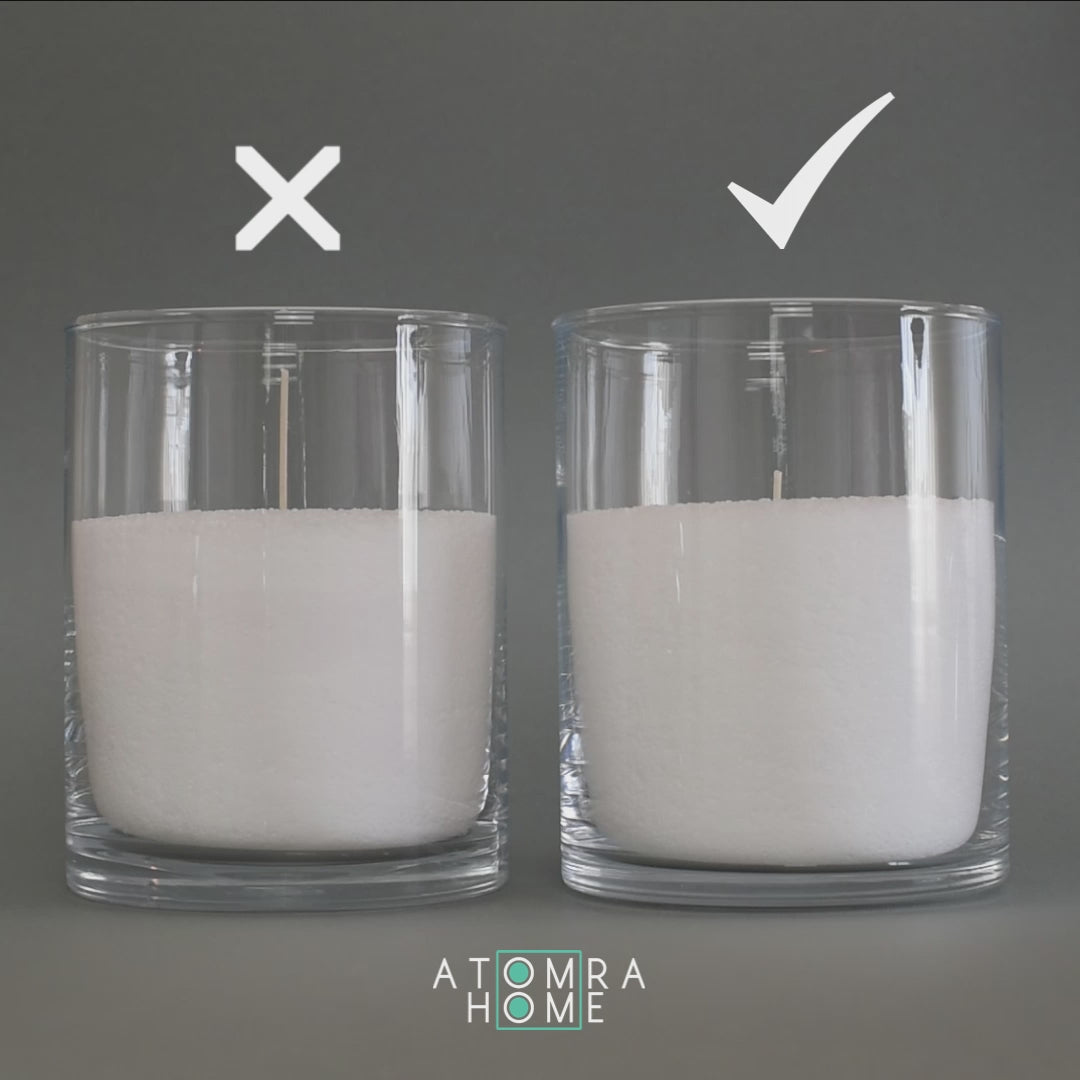 - Insert the wick, leaving max 1cm (1/4”) out of the wax and ignite.