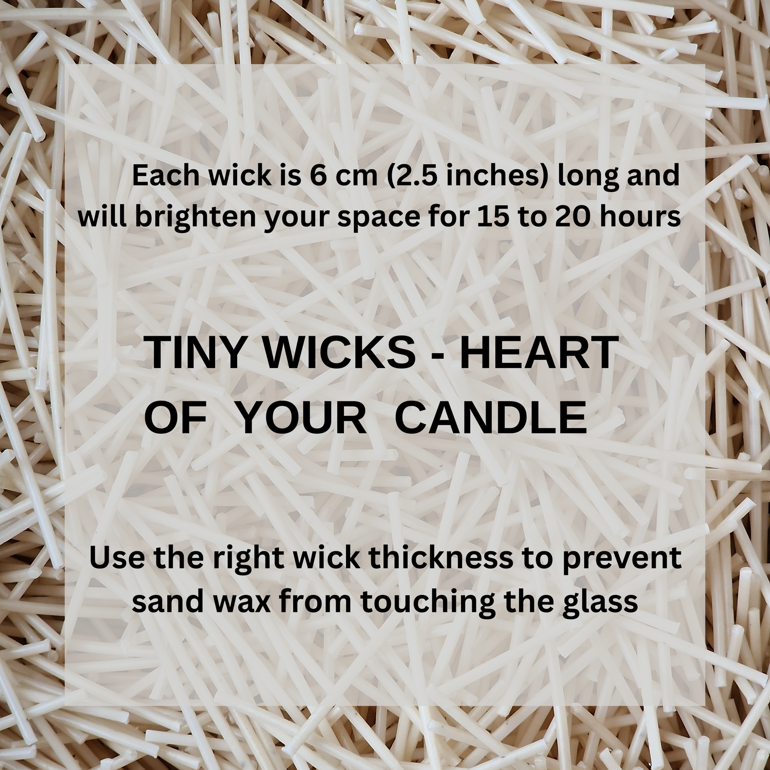 Tiny wicks - heart of your candle. By choosing the right wick for your candle, you can prevent the melted wax from touching the walls of the container and ensure a safe burn.